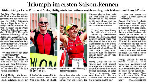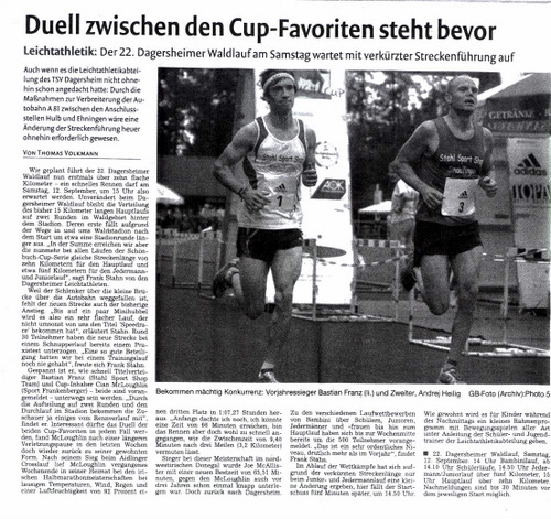 Die jeweils neuesten Nachrichten zum Wettkampfgeschehen, komplett mit kurzer Analyse des Rennverlaufs! Leider sind nicht immer alle Artikel zugänglich - über zugesendete Berichte als PDF (an info(at)andrejheilig.de) freue ich mich deshalb sehr.
